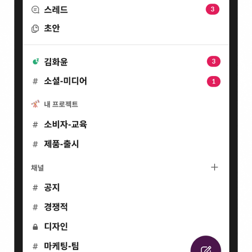 - 음소거(Mute): 시급하지 않은 채널은 음소거하여 배지·푸시 없이 ‘읽기 전용’으로 두기